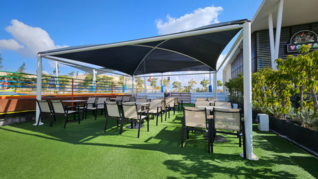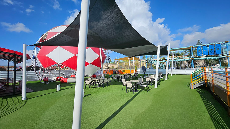 Our shade project at NEO PLAZA Cyprus has been successfully completed, transforming the outdoor areas with a combination of custom-made shade sails and our versatile Zeus carport system. We designed, manufactured, and installed bespoke steel posts, integrated existing frames, and applied premium Arizona and Desert Sand fabrics to create large, architecturally striking structures that protect shopfronts, play equipment, and outdoor seating zones. The installation also includes multi-colour shade sails for the poolside, complete with custom-made post protectors, ensuring that both children and adults can enjoy cool, sun-safe spaces. Every element was carefully planned with the original Fun Town layout in mind, guaranteeing that the equipment’s safety and functionality remain uncompromised while providing long-term protection and aesthetic appeal against the harsh Cypriot sun.