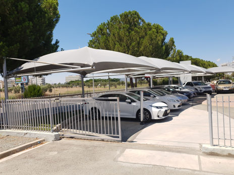 The New Car Trust dealership in Nicosia has been transformed with the installation of our popular Zeus Carport modules and custom-made shade sails, combining functionality with striking design. These premium shading solutions provide reliable year-round protection against sun, rain, and hail, while also elevating the dealership’s appearance with a sleek, modern aesthetic. The adaptability of the Zeus system, paired with bespoke shade sail designs, ensures full coverage across the outdoor areas—offering trusted protection for trusted cars in the heart of Nicosia.